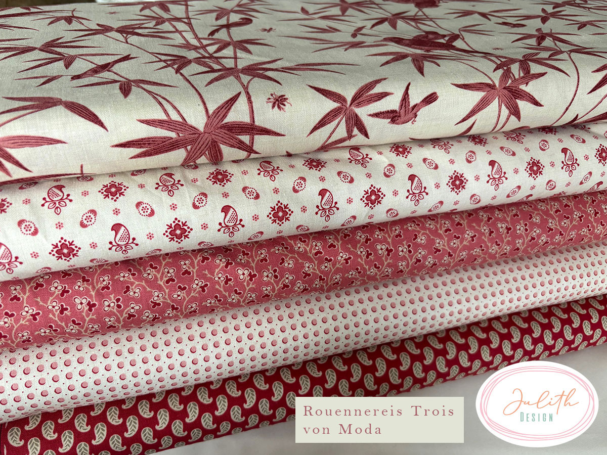 Nostalgie pur. Wunderschönes französisches Design von French General verbindet zarte Blumen, Vögel und Blätter in der Rouenneries Trois Kollektion zu einer Augenweide für jeden Patchworkfan und Quilter.