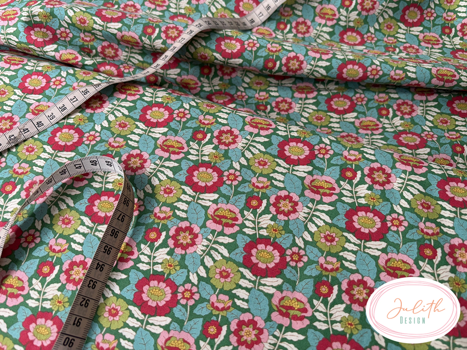 Dies sind die grünen und pinken Stoffe dieser Tilda Kollektion. Wallflower ist eine dekorative Kollektion, inspiriert ist von einem etwas romantischen Blick auf Designstile aus den 1960er und 70er Jahren bietet. Diese Linie ist süß und frisch mit Vintage-Rottönen, -Grüntönen und -Pinktönen.